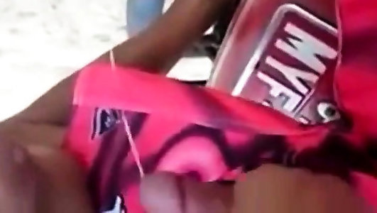 дрочит и отсасывает член на общественном пляже