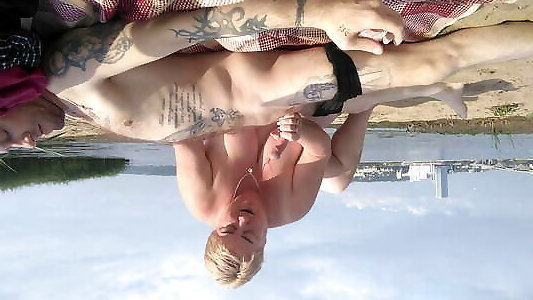 демонстрирую свое копье перед парнем на общественном натуристском пляже, пока моя жена дрочит мне - очень рискованно с людьми рядом с р1