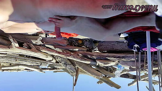 сексуальная милфа-каморка писает в воду на общественном пляже