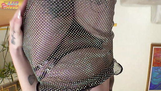 красивая темнокожая шлюха в рыболовных сетках подставляет парням лицо своей тугой киской и трахается