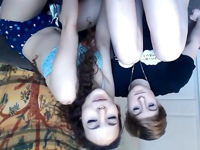 бледные рыжеволосые и загорелые шатенки-лесбиянки играют и жуют