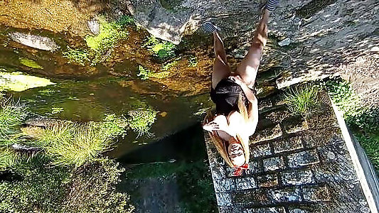 пышногрудая пума снимает свои трусики на открытом воздухе