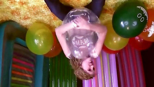 белокурая красотка пинает и тискает член и орешки пухлого парня