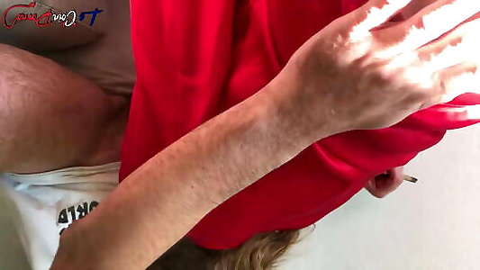 большегрудая брюнетка с гладко выбритой кутерьей отсасывает своему гладко выбритому приятелю