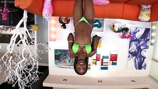 черная милашка с пузырчатой попа крепко обхватывает свою тугую вагину