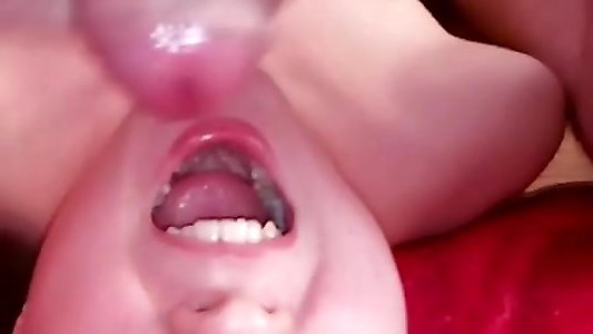 подробный крупный план, грязная неаккуратная глубокая глотка и сперма в рот
