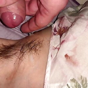 от первого лица просыпаюсь, трахаю волосатую киску мачехи крупным планом и обильно кончаю