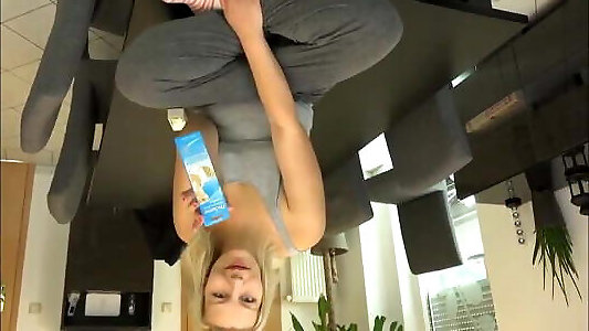 случайный секс и кремовый пирог во время трения киски в странных трусиках