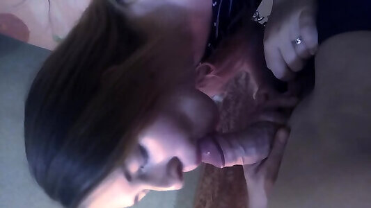 прежде чем наполнить свою попку спермой, рыжеволосая делает ему глубокий минет, используя секс-игрушки