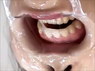 изменяющий муж наполняет рот резиновой куклы горячей спермой