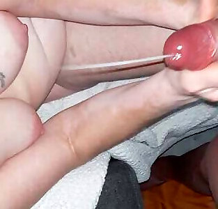 самая быстрая ручная работа заставила его быстро кончить на мои сиськи