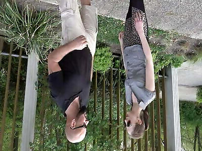 мачеха показала свои сиськи прохожим и получила сперму в рот. экстремальный секс на балконе