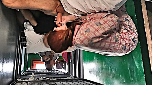 рискованный публичный секс в поезде. мастурбирует и сосет. кончает в рот симпатичной пассажирке
