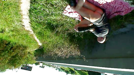 темноволосая немецкая красотка получает свою подстриженную киску на открытом воздухе