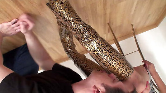 немецкое женское доминирование пума тренируется с марионеткой в нейлоновых чулках