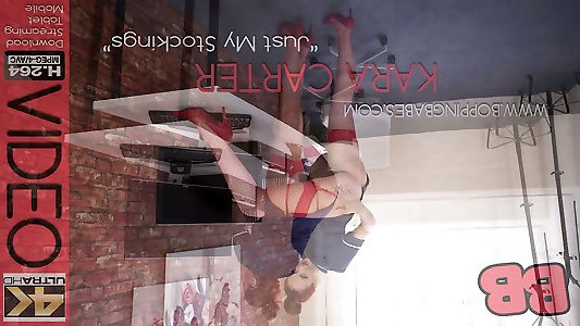 агрессивная соблазнительница кара картер соблазнительно позирует в красных нейлоновых чулках