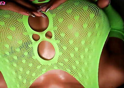красотка с волосами цвета воронова крыла высасывает жирную порцию спермы, одетая в зеленое бикини