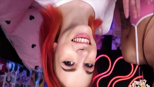 рыжеволосая сводная сестра сосет мужскую сосиску сводного брата и получает жесткий удар