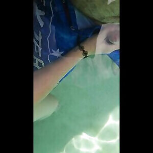 домашняя любительская съемка с натуры: большие сиськи в купальнике возбуждают и выдавливают сперму в позе наездницы
