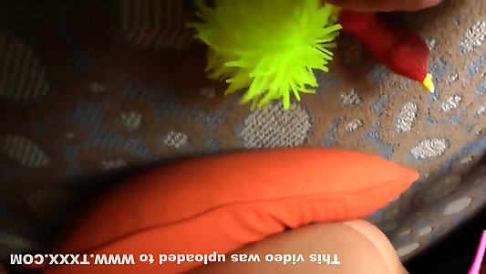 ручная дрочка вульвы на кухне и мастурбация палочкой для траха