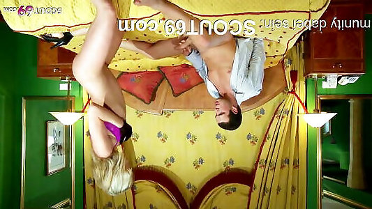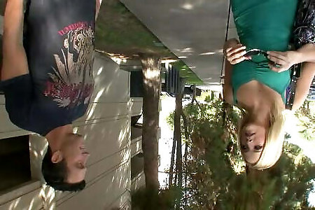 эффектная молодая блондиночка насаживает здоровенного парня на шест и получает массаж лица
