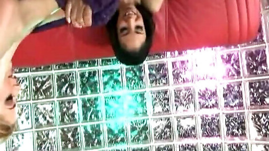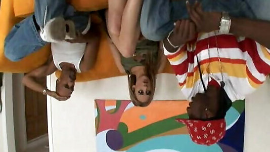 потрясающая красотка с завязанными глазами занимается двухрасовой любовью с черными парнями, которых она любит кучу