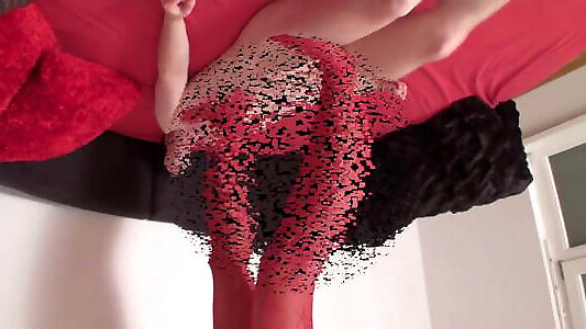 мамочка в красном белье &амп; колготки является молодой брючного змея в жопу