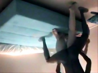 стоя и подняв одну ногу, трахаюсь в середине траха, она брызгает, а потом я подхватываю и трахаю ее, она говорит, что твой член слишком большой