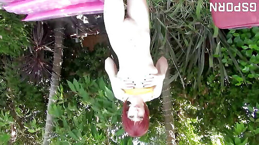 симпатичная молоденькая девушка трахается со своим пожилым мужчиной в киску и задницу на шезлонге