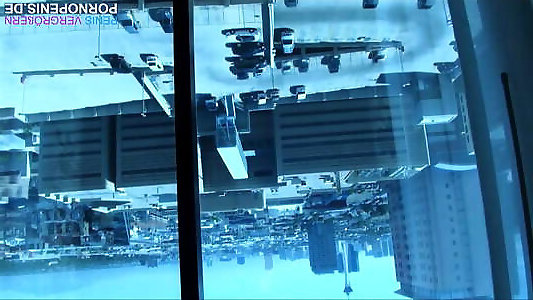 озорная красотка на публике сзади колотит в панорамное окно и получает сперму в рот