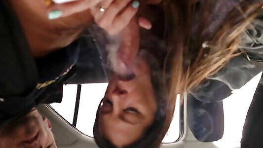 большими жаждущими губами посасывая возбужденный разрушенный член, она трахается своим безумным минетом
