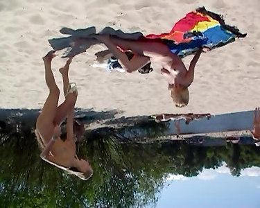 обнаженные цыпочки-тини, загорающие на солнце, заканчивают тем, что вылизывают сладкие соски друг друга
