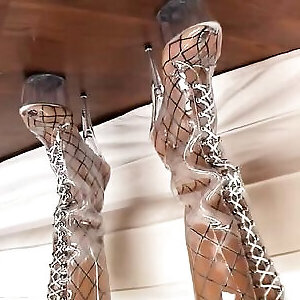 светловолосый подросток с блестящей попкой рвет колготки