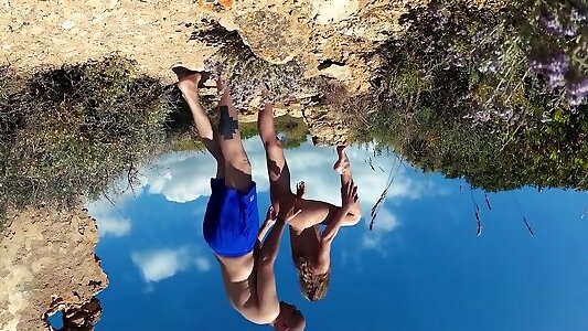 горячая нудистская парочка трахается в сухом ручье во время пешего похода