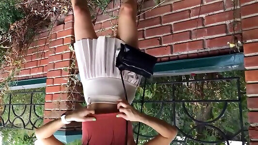соседка-нимфоманка и эксгибиционистка позвонила, чтобы снять ее на улице и подрочила в общественном месте