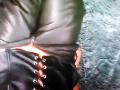 кожаные леггинсы дразнят киску верблюжьим носком asmr