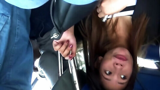 миниатюрная азиатка отсасывает член парню после того, как показала ему свою волосатую киску