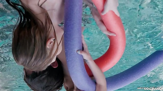 uber-милые и безумные миниатюрные белые дамы в бассейне найти чувака с большой manmeat