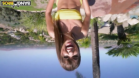 миниатюрная женщина в бикини райли рид растягивает свою пизду у бассейна