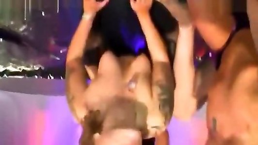 используя свой рот и большие сиськи в качестве живого члена в клубе