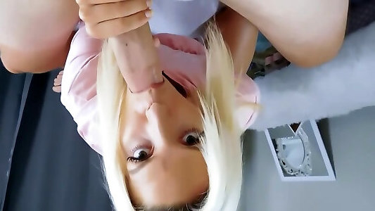 точка зрения сводный брат учит делать минет своей платиновой блондинке-невестке. полный глоток спермы