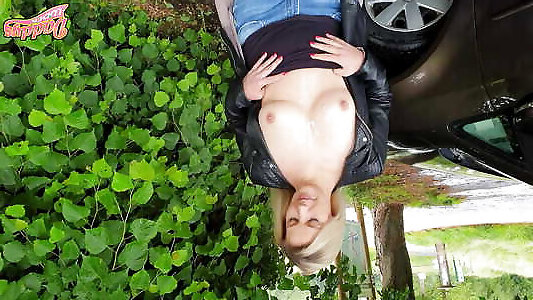 накрашенная на публике мамаша скачет на секс-свидании с парнем на открытом воздухе после минета