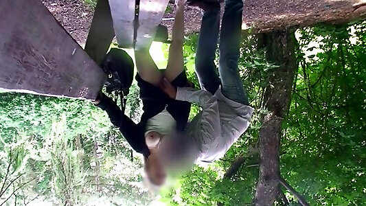 мастурбирует на открытом воздухе во время кемпинга и сосет член