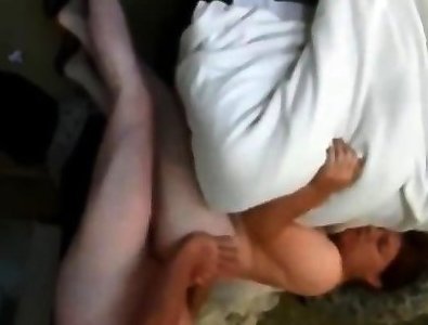 рыжая пума забивает гвоздями большой черный член, чтобы кончить, пока муженек спит