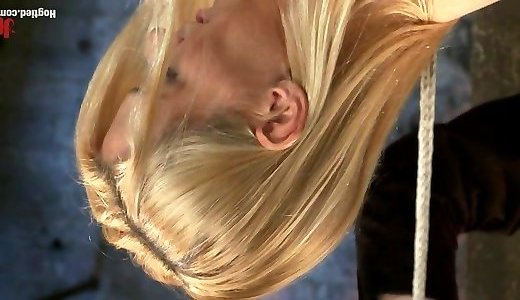 бомба оболочка платина-блондинка с здоровенный кексы, загар, длинные прекрасные ноги связали, товары связали и сделали, чтобы сперма свиньи связали