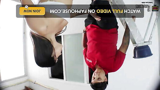 потрясающая брюнетка-домохозяйка с маленькими сиськами трахается с сантехником, пока ее муж на работе