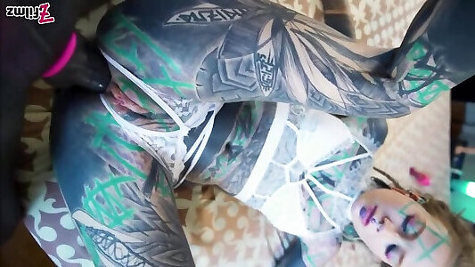 великолепный татуированный мейсон играет с ее кутчи в ее розовый