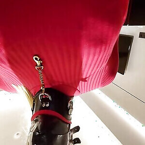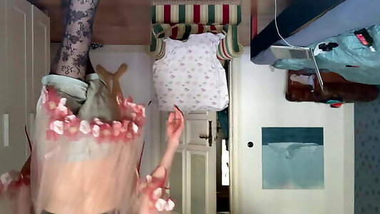 сисси в сексуальном нижнем белье переодевается в кроссдресс с красным диском, играя в анал 2