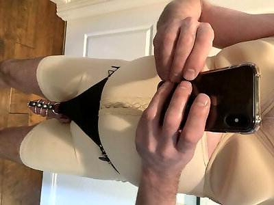 фембой задирает мне под юбку стринги, дразнит и раздвигает