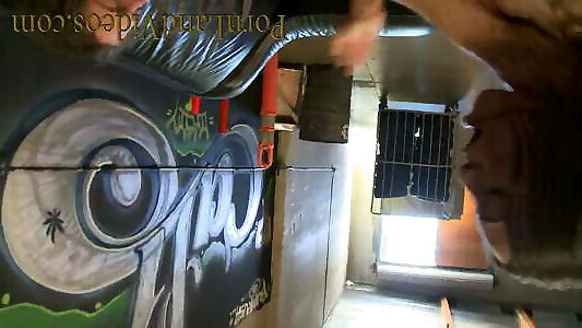темноволосая наклонилась над лестницей и порвана по-догги стайл